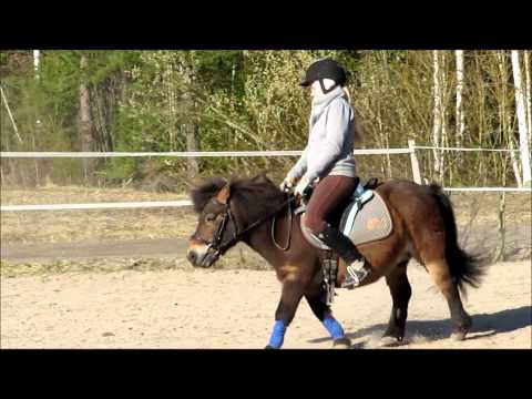 Alkuun Heppu oli tosi tahmeen näköinen, eikä suostunut liikkumaan ollenkaan. Kun sitten muutaman kerran hyppäsivät ja laukkailivat reippaammin, alkoi ponikin innostua ja lopuksi menikin ihan kivasti :) Hyppäsivät noin tunnin, jonka jälkeen poni oli satulan alta ja ryntäistä aivan litimärkä. Tallissa herra pääsikin suihkuun ja sitten ulos piehtaroimaan ja nauttimaan auringosta.